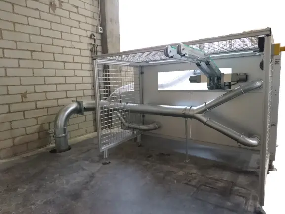 Diese manuelle Reinigungsstation ist speziell für das Polieren von Drehteilen mit Scotch- oder Schleifband ausgelegt. Die Werkstücke werden dabei pneumatisch in einer Spannzange fixiert, was eine sichere und präzise Bearbeitung ermöglicht.