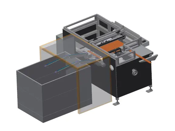 Die Holzleisten werden automatisch aus einem Magazin vereinzelt, in die Anlage eingeschoben und seitlich auf Maß abgelängt. Anschließend erfolgt die Profilierung mit einem Fräswerkzeug, abgestimmt auf das gewünschte Leistenprofil. Am Ende der Anlage werden die fertigen Leisten über zwei Auslaufbänder in einen Palettenrahmen gefördert – bereit für die Weiterverarbeitung oder den Versand.